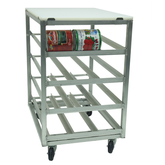 The inclined can guides provide easy access and facilitate stock rotation when loaded from the rear. Racks are made from heavy duty aluminum extrusions, all welded construction.